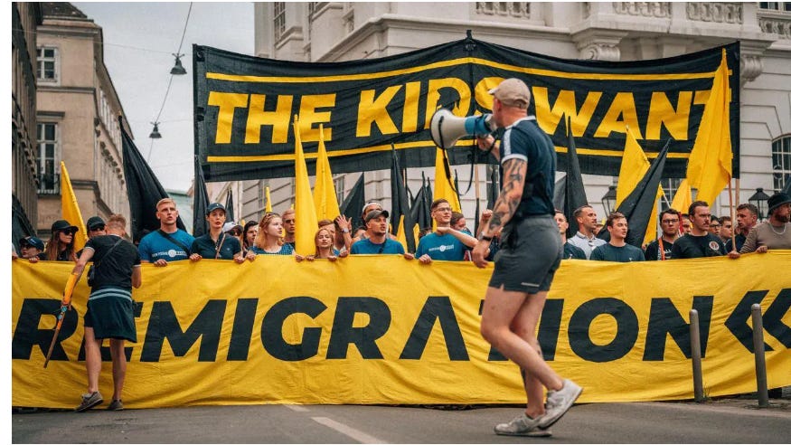 The image below shows young European nationalists marching through Vienna demanding mass deportations with a banner reading “the kids want remigration.”