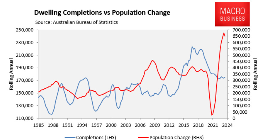 Housing supply and construction has not been able to keep pace with Australia's rapid surge in population driven by mass immigration.